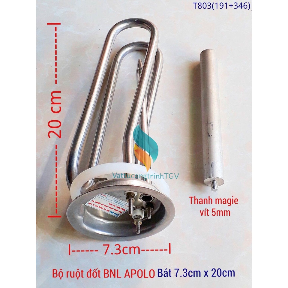 Bộ ruột đốt Bình nóng lạnh APOLO bát tròn 7.3cm x 20cm + Thanh magie 5mm(191+346)