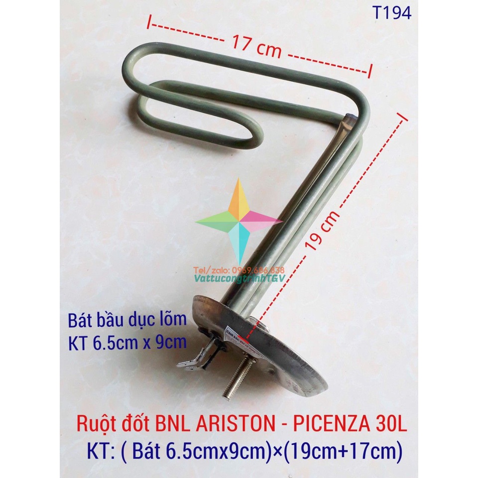 Giới thiệu Ruột đốt Bình Nóng Lạnh ARISTON 30L bát lõm 6.5cm x 19cm+17cm