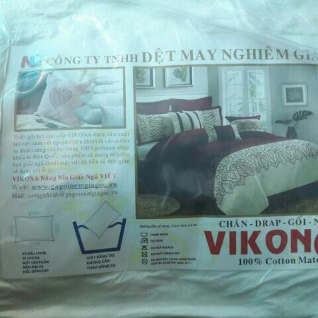 :1 ruột gối nằm 50x70cm, 40x60cm , gối vuông tựa lưng 45x45cm, gối ôm 035x105cm.Vikona được sản xuất trên dây chuyền hiện đại mang đến cho bạn giấc ngủ sâu và thoải mái.Kiểu dáng gối gọn nhẹ tiện dụng, phù hợp với mọi đối tượng, thích hợp dùng cho khách sạn, nhà nghỉ... và gia đình.
