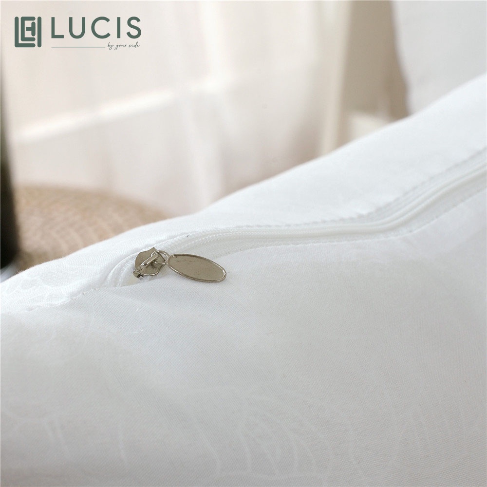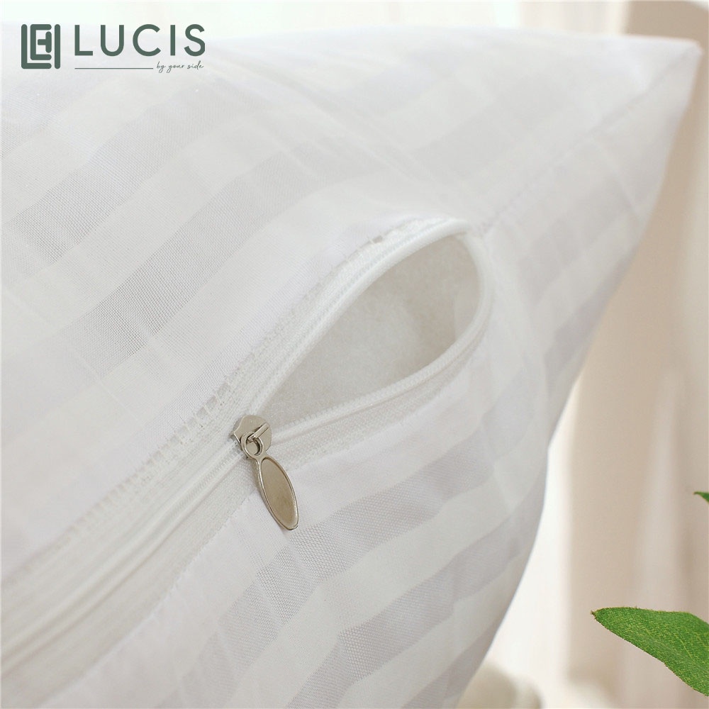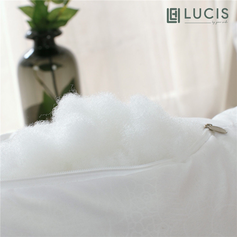 - Ruột gối nằm tựa lưng LUCIS được thiết kế có khóa kéo tiện lợi để lấy bông ra ngoài, dễ dàng cho việc vệ sinh gối thường xuyên, giặt giũ, độ bền cao.