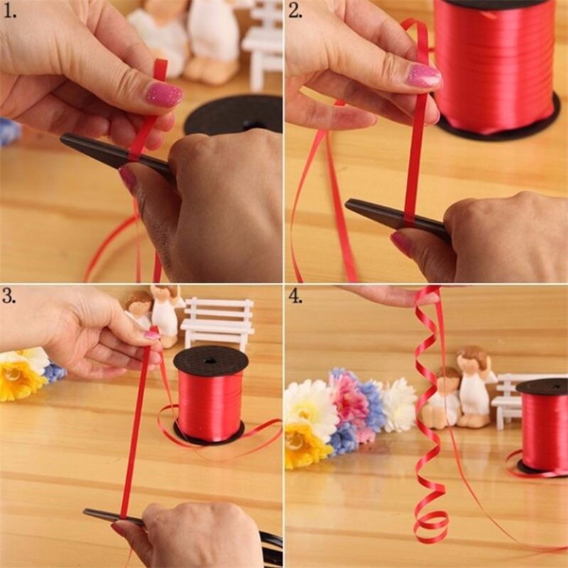 Cách dùng: bạn buộc vào đuôi bóng dùng thước kẻ hay đuôi kéo tuốt tạo thành những đường gợn sóng, trang trí bóng rất đẹp. Ngoài ra ruy băng còn rất nhiều công dụng khác nữa.