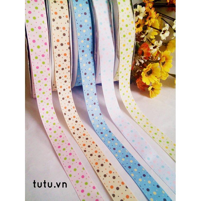 RUY BĂNG GÂN 22MM HỌA TIẾT CHẤM BI NHIỀU MÀU