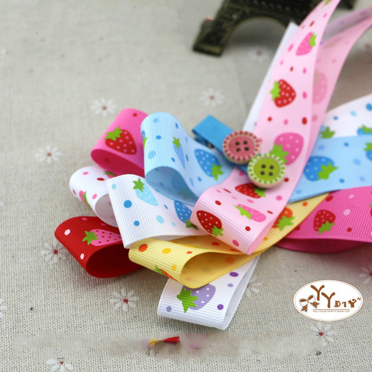 Giới thiệu RUY BĂNG GÂN 25MM HỌA TIẾT DÂU TÂY HT25-001, RUY BĂNG DIY HANDMADE LÀM NƠ BỜM KẸP TÓC