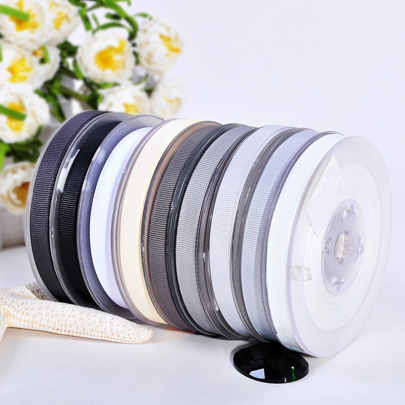 Ruy băng gân màu đen trắng ghi 25mm phụ kiện thời trang phụ liệu nơ tóc đồ handmade thủ công gói quả trang trí#000-077