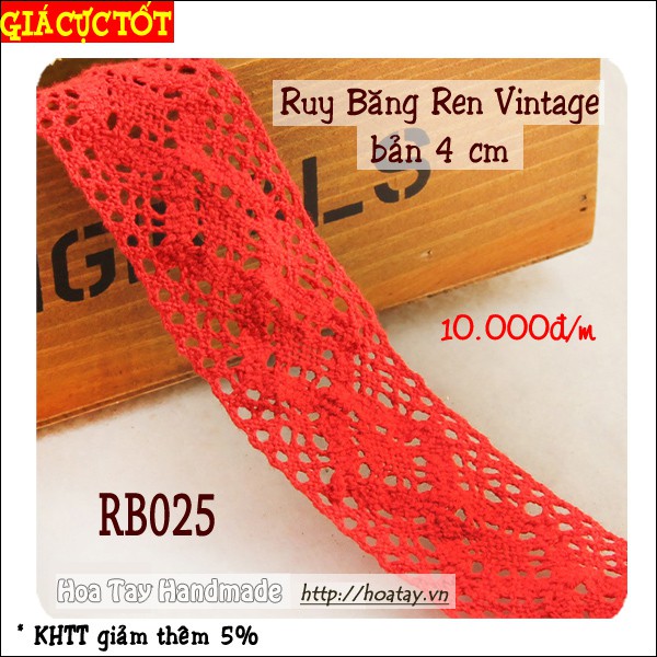 Sở thích & Sưu tầm > Dụng Cụ May Vá || Ruy Băng Ren Vintage màu đỏ 4cm dùng trang trí nón, túi xách, phụ kiện thủ công RB025Còn hàng