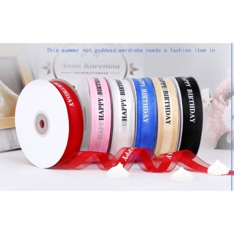 Ruy băng voan happy birthday bản 2,5cm dùng buộc hoa, buộc thắt hộp quà sinh nhật. có nhiều màu sắc phù hợp voiw mọi nhu cầu của khách hàng.shop cung cấp đủ các loại ruy băng các bạn xem trong shop nhé