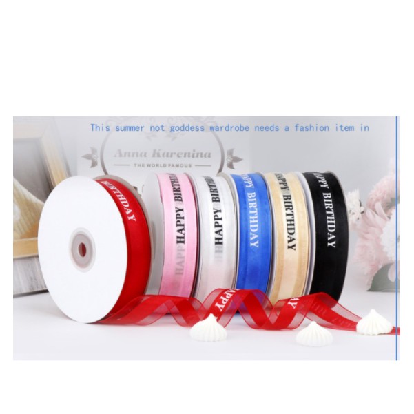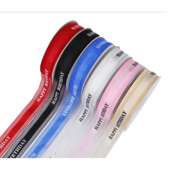 Ruy băng voan in chữ Happy birthday, ruy băng in chữ Happy birthday- Ruy băng chất liệu voan mỏng in chữ Happybirthday sang trọng để trang trí gói quà, trang trí tiệc, ....
