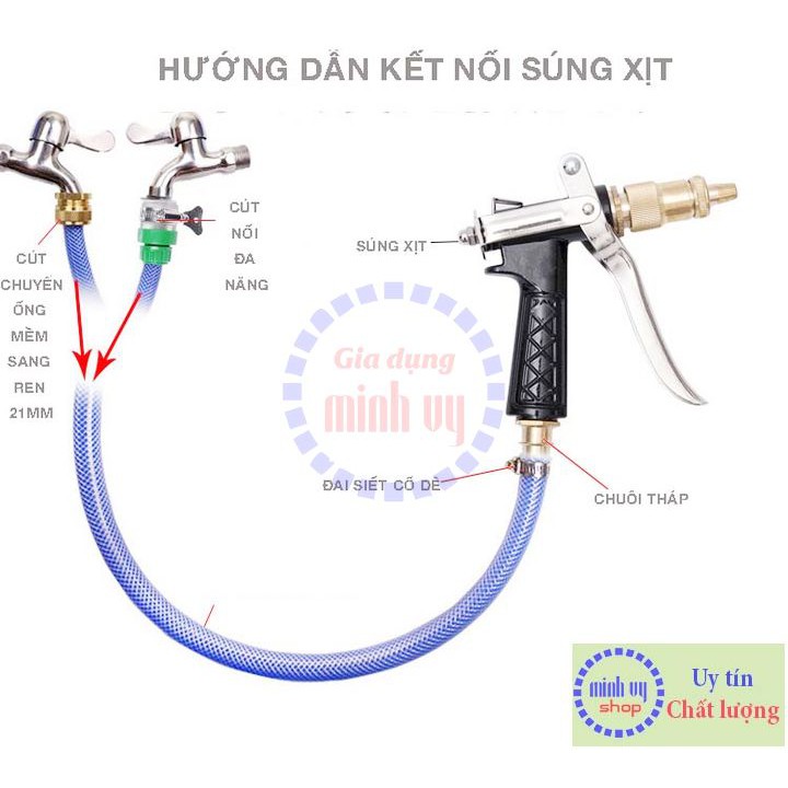 Giới thiệu S.úng xịt - vòi rửa xe kim loại áp lực cao - Chuôi nối nhanh - chuôi tháp - chuôi thẳng rửa sân, tưới cây hoa, rửa xe
