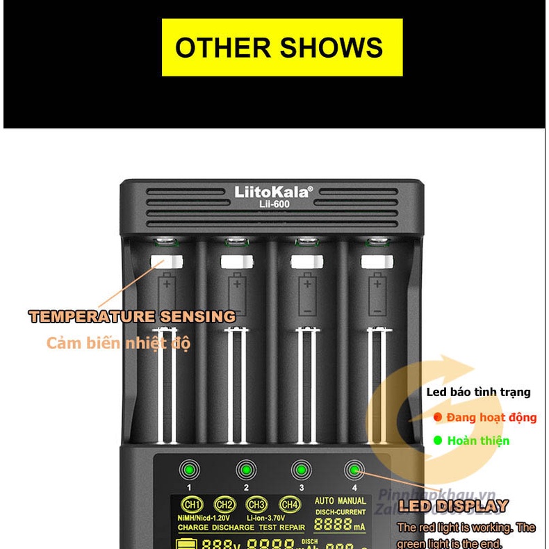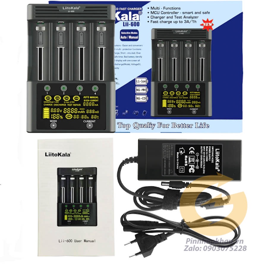 Lii-600 - Bộ sạc nhanh 3A 4 khe độc lập ( nạp được cùng lúc 4 pin lớn) đa năng đời mới của Liitokala