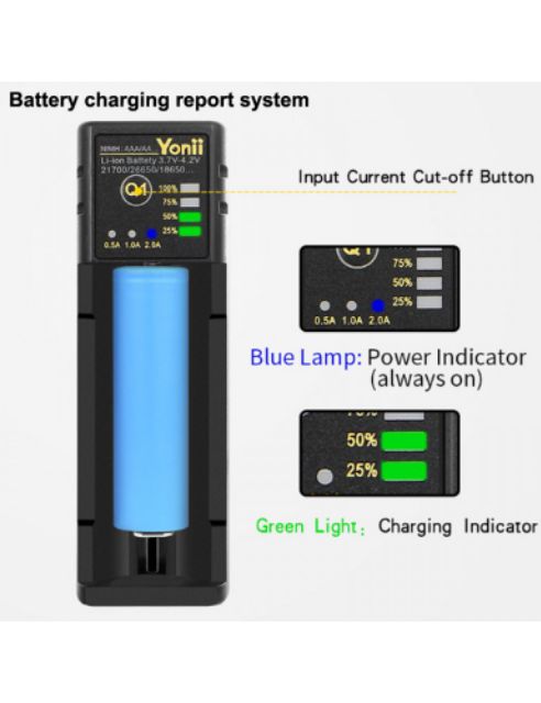 Giới thiệu [S3] Sạc pin đa năng Yonii Q1 Plus USB 2A 3.7V 1.2V Aa aaa 14500 18650 21700 LI-ION/NI-MH/NI-CD bản nâng cấp của lii-100