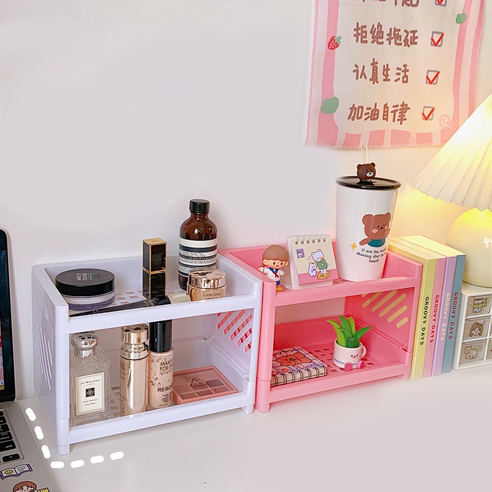 Nhà cửa & Đời sống > Nội thất > Kệ & Giá || S43 Kệ Nhựa Mini 2 Tầng Để Bàn Đựng Đồ Trang Điểm, Đồ Dùng Học Tập Siêu Tiện LợiCòn hàng
