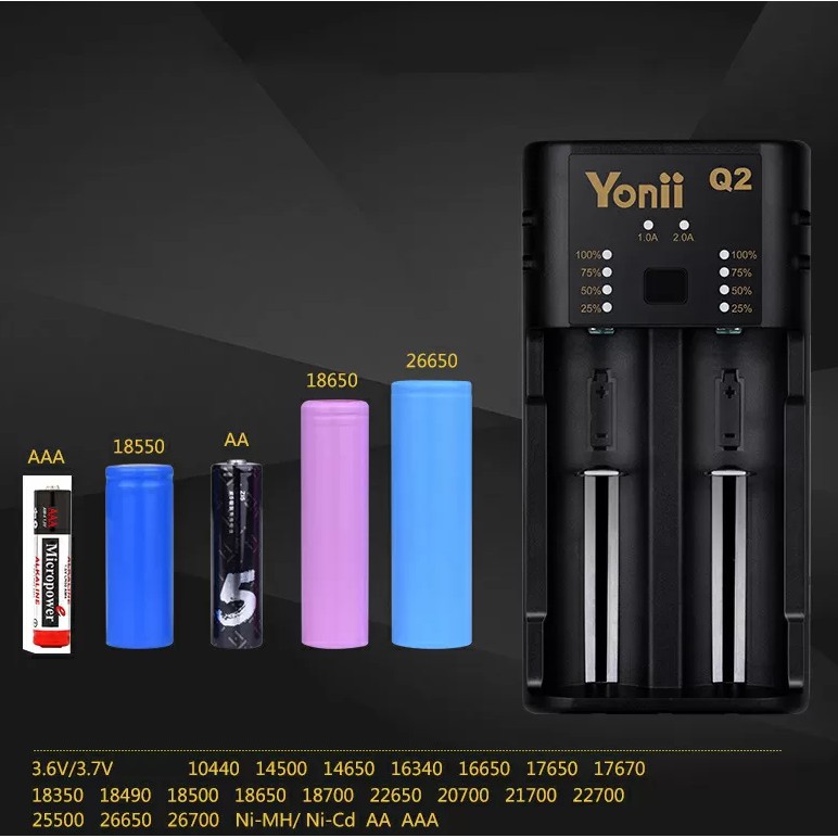 Thiết Bị Điện Gia Dụng > Pin || [S5] Bộ sạc đôi Yonii Q2 Plus 2 khe, 2A cấp nguồn ra 5V 1A thay thế cho Lii-202 21700 26650 18650 aa aaaCòn hàng