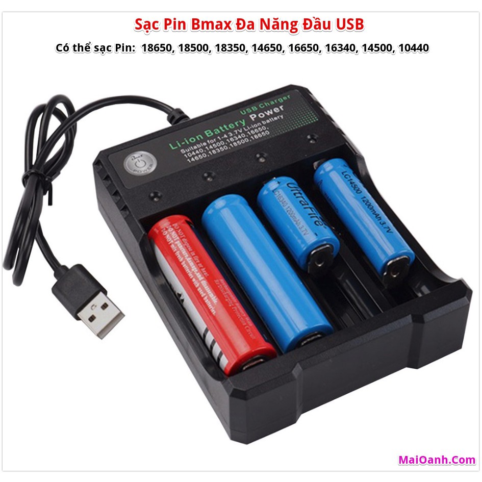 Giới thiệu Sạc Đa Năng Đầu Usb Nhiều Khe - Sạc Pin 18650, 14500 - Tự Động Ngắt Khi Pin Đầy BMAX