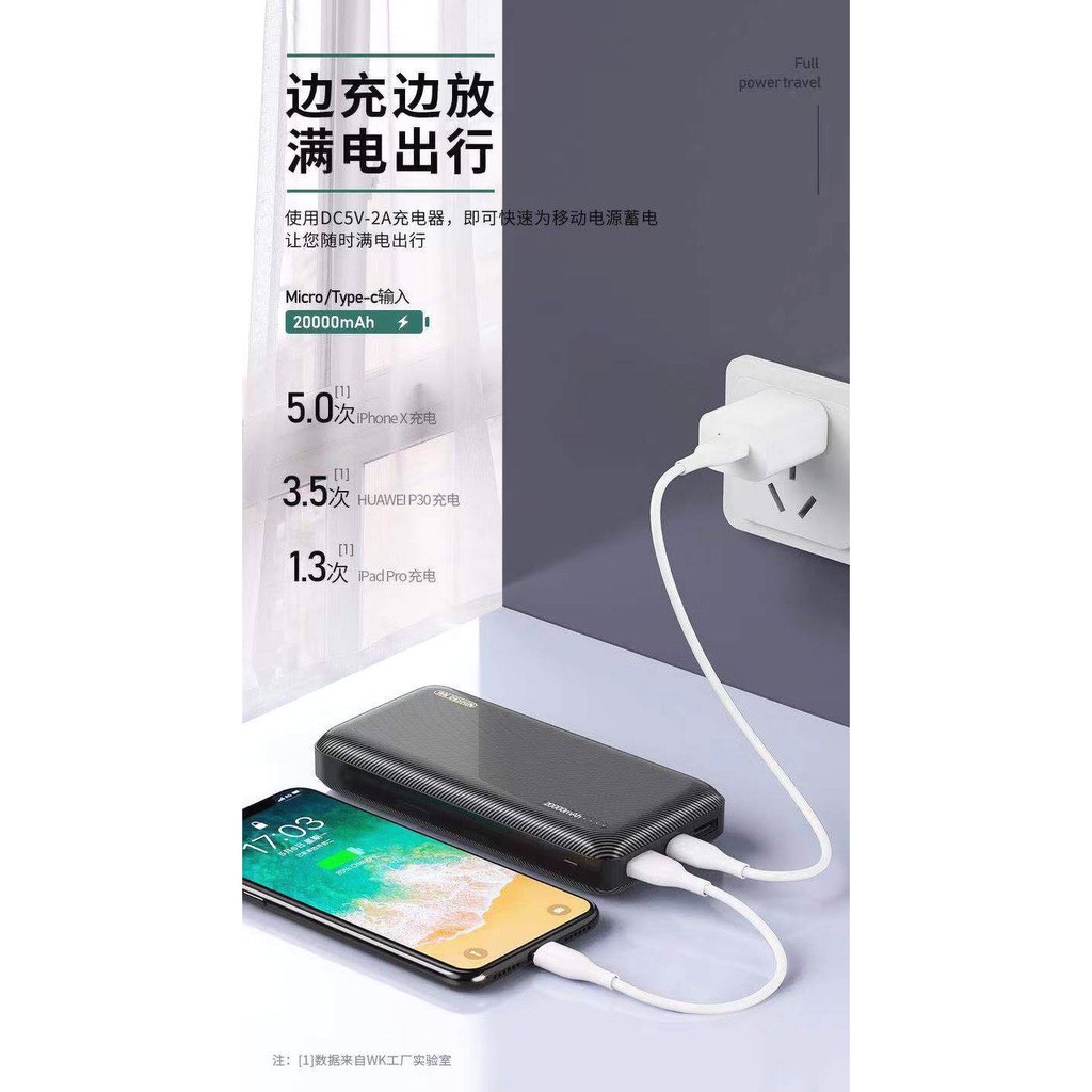 Sạc dự phòng 20000mah WK DESIGN WP117 sạc nhanh 2 đầu ra USB 5V 2.1A có thể sạc được tới 2 thiết bị cùng lúc - BAOVY