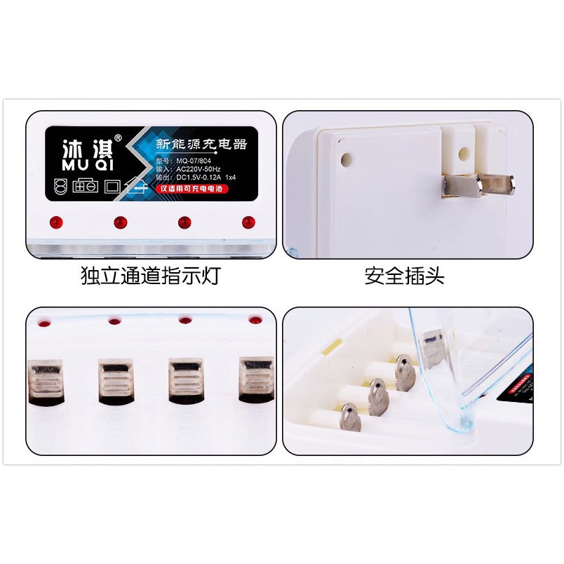 Sạc pin MQ-07, có thể sạc đồng thời cùng lúc 4 viên. Bạn có thể sạc 4 viên cùng lúc hoặc 1, 2 viên đều được.Với cường độ dòng điện out lên tới 250 mAh nên tốc độ sạc khá nhanh.