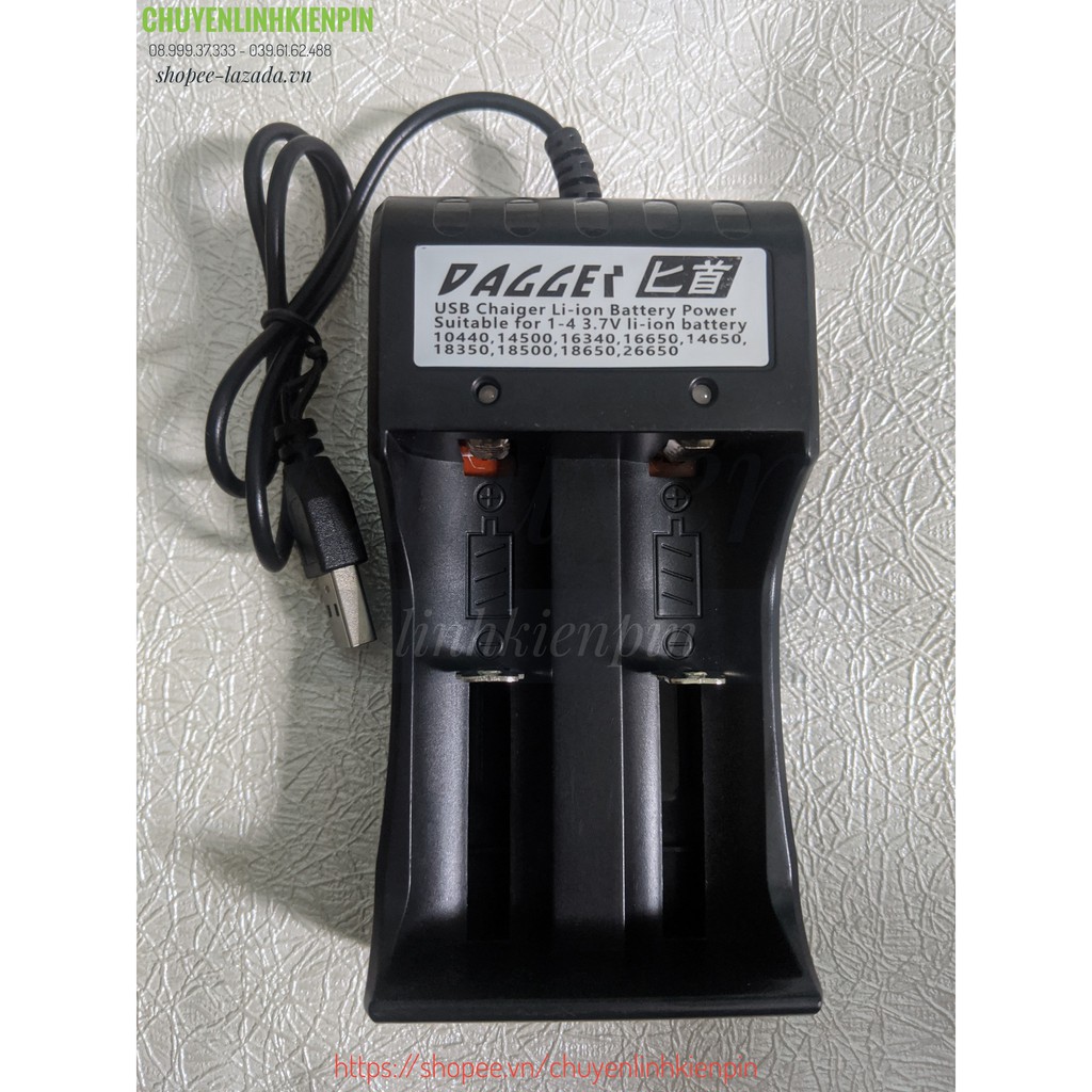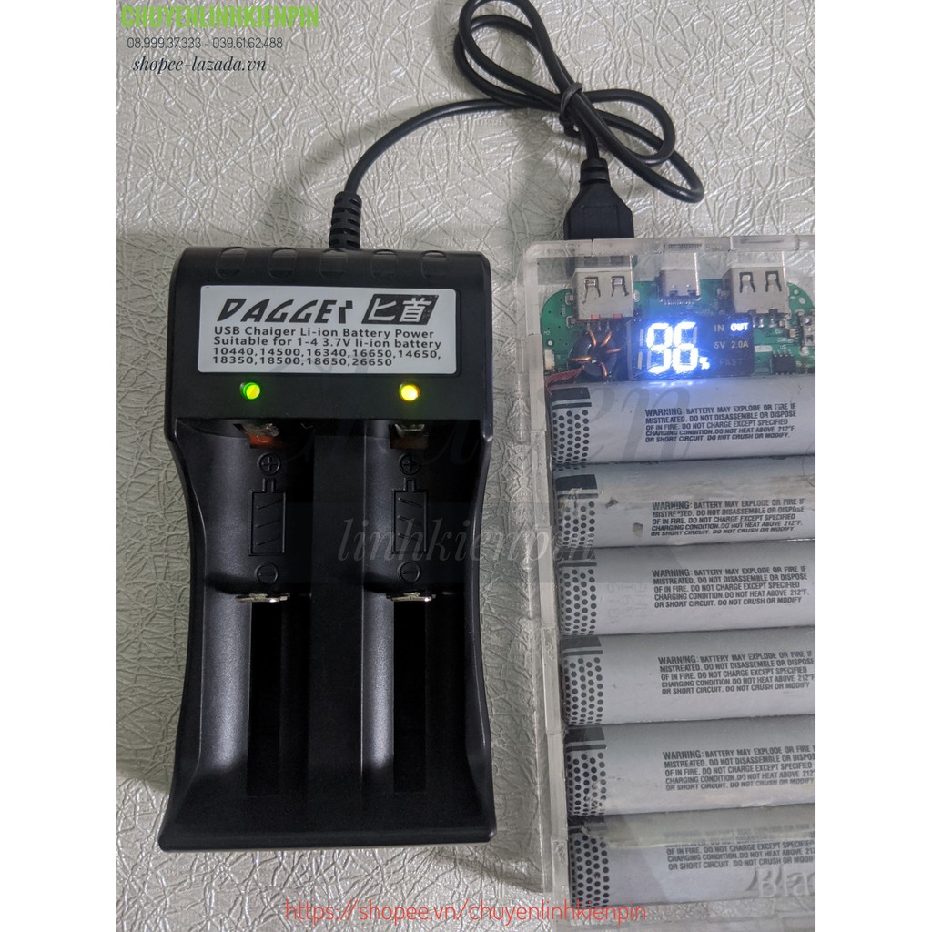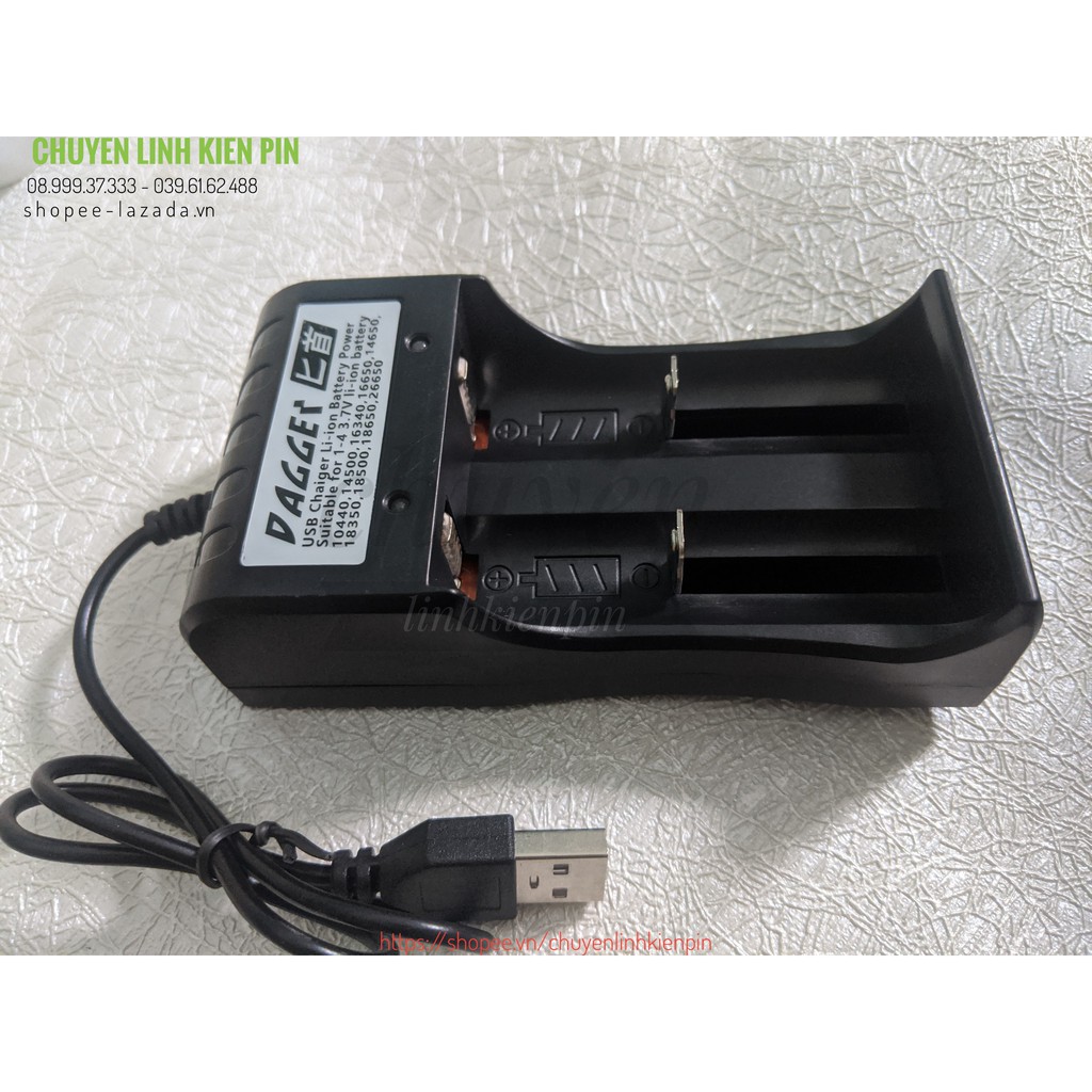 Bộ sạc 2 cell pin Lion 18650 cổng USB typeA hỗ trợ 10440, 14500, 16340, 16650, 14650, 18350, 18500, 26650.. ( BL64_169 )