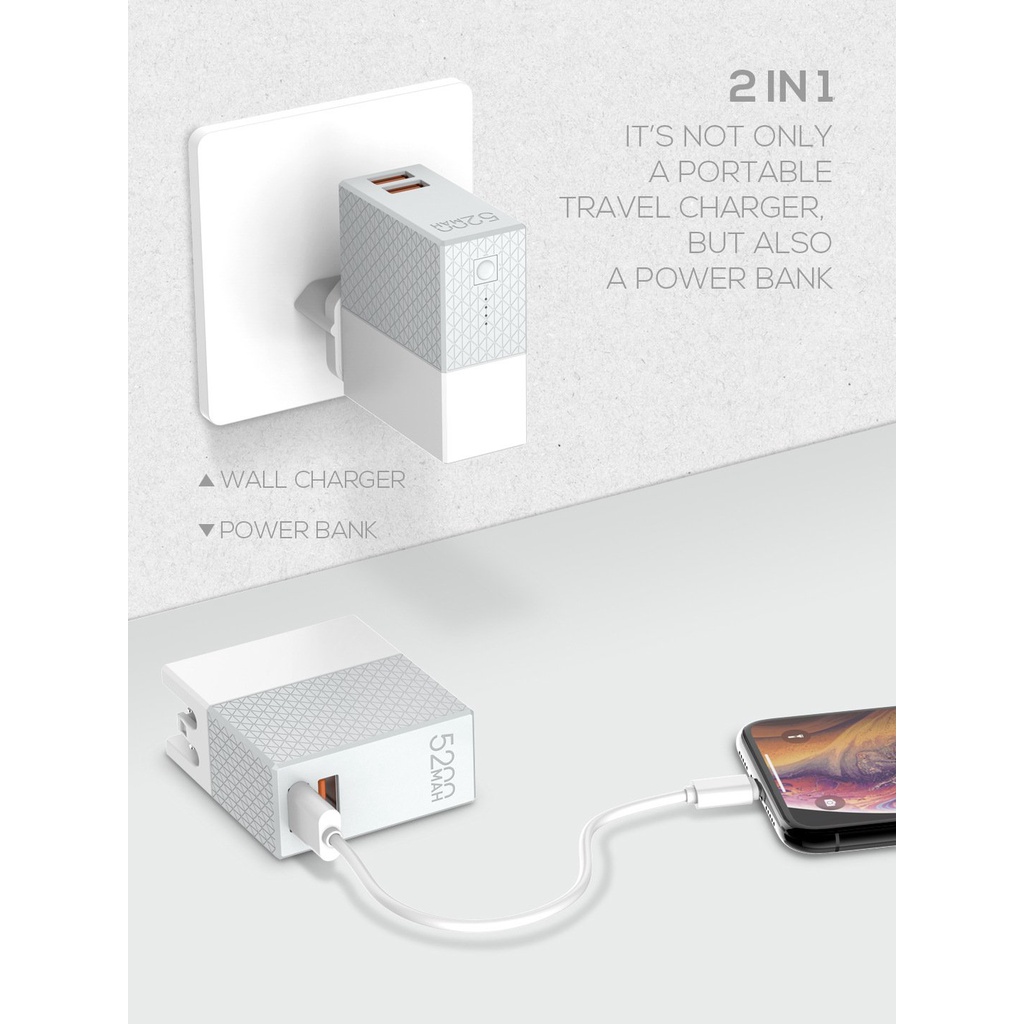 ✅ Mua 1 nhưng nhận 2Là sự kết hợp hoàn hảo giữa pin dự phòng và sạc tường trong một sản phẩm.