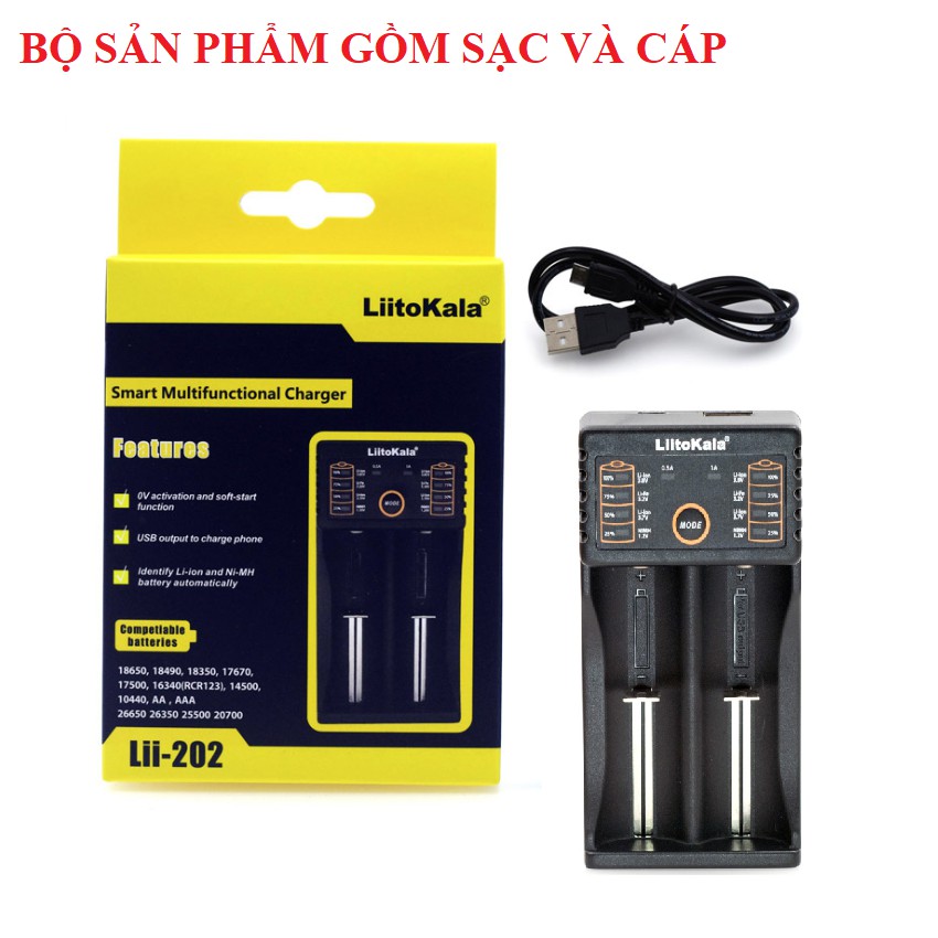 Sạc pin đa năng Liitokala lii-202 dùng cho 2 pin 3.7v- Có thể sạc nhiều loại pin khác nhau: 18650, 18490, 18350, 17670, 17500, 16340(RCR123), 14500, 10440, 26650, 26350 25500 20700