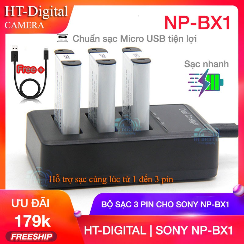 Bộ Sạc 3 Pin Cho Sony NP-BX1 Bộ sạc pin máy ảnh máy quay Sony DSC-RX100, DSC-RX100II, RX100M4, DSC-RX1, DSC-RX1R