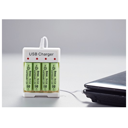 Bộ sạc 4 khe BMAX cho pin tiểu sạc AA và pin đũa sạc AAA, cắm cổng USB an toàn và tiện lợi