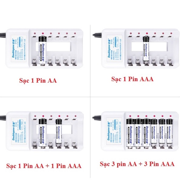 Bộ Sạc 6 pin AA/AAA Chính Hãng Doublepow DB-B06 - Bộ Sạc Pin Tiêu Chuẩn Chính Hãng