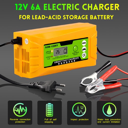Sạc ắc quy khử Sunfat 12V - 6A có đồng hồ hiển thịMàn hình hiển thị LCD : hiển thị điện áp , dòng sạc , nhiệt độ , báo lỗi nếu có