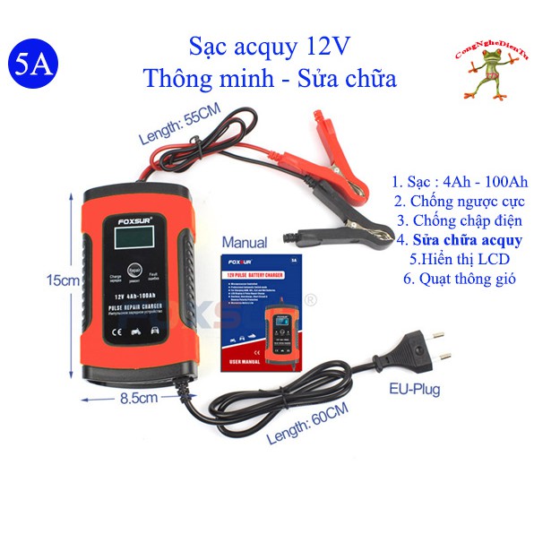 Sạc acquy 12 volt FOXSUR dòng sạc 5A
