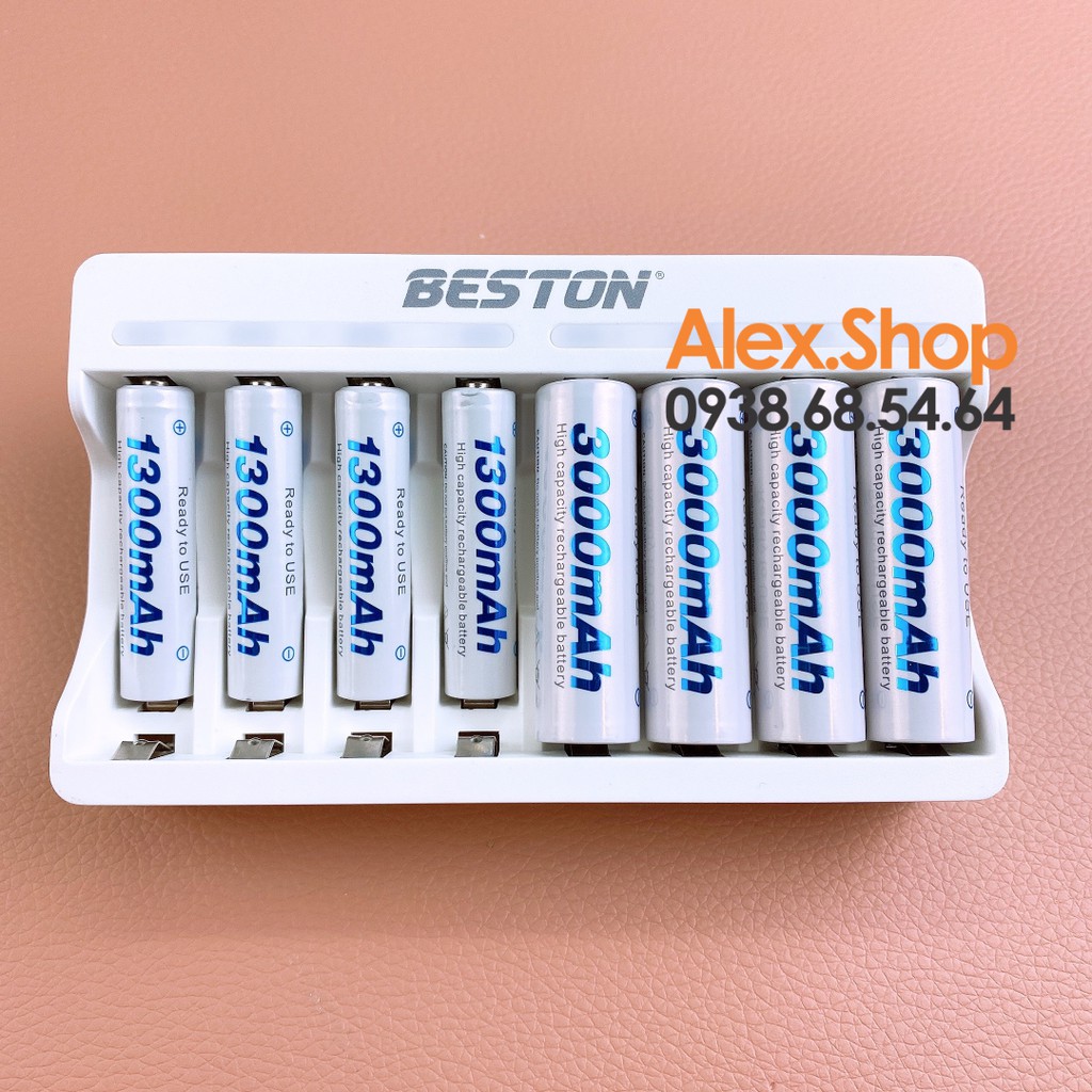 Combo gồm 4 Pin Sạc BESTON AAA 1300mAh Sạc + Sạc 8 Viên C833 v2 2021
