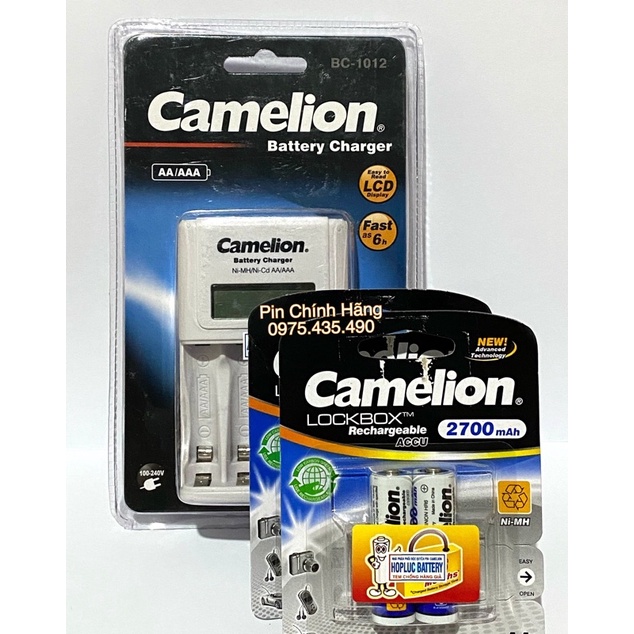 Bộ Sản Phẩm ba gồm: Bộ Sạc Camelion BC-1012 bao gồm một máy sạc không kèm pin + 4 Viên Pin AA Lockbox 2.700 mAh.