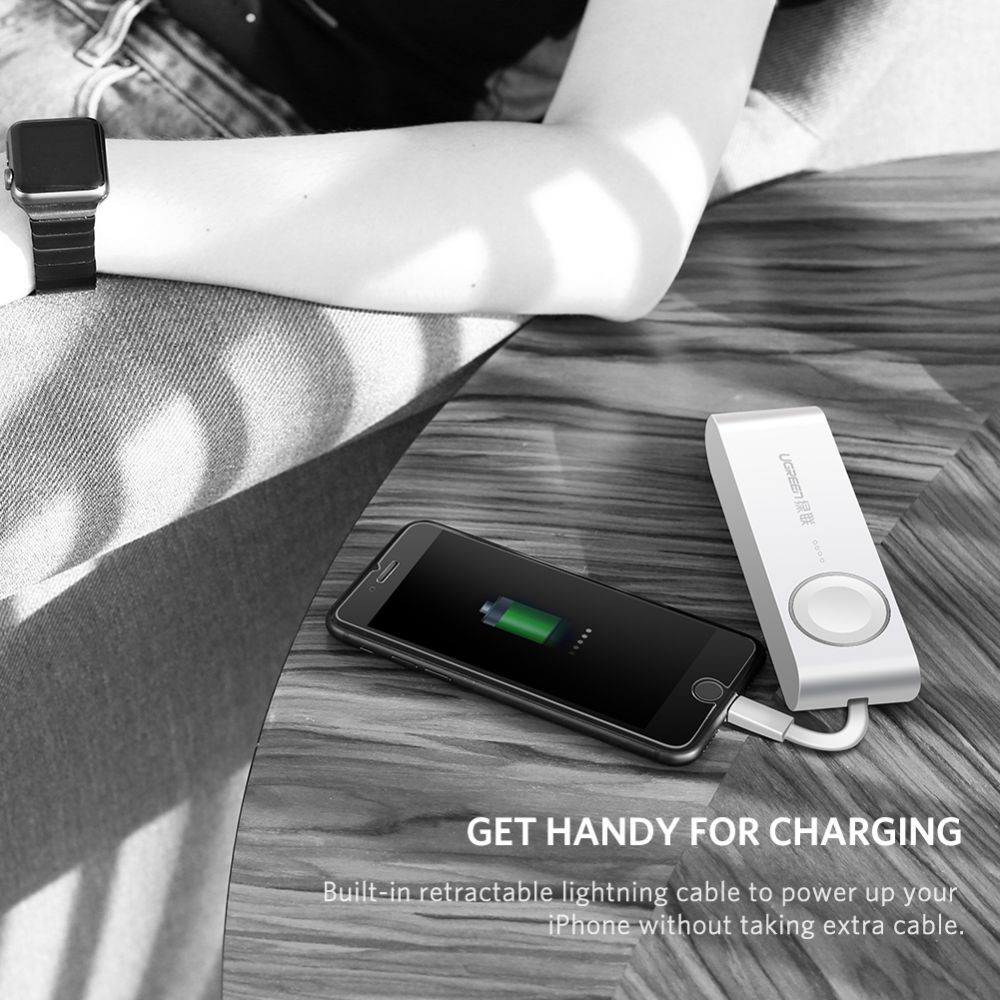 Điện Thoại & Phụ Kiện > Pin sạc dự phòng >< 5000mAh || Sạc cho Apple Watch Series 6/5/4/3/2/1/nike+/Herms/Edition + Sạc dự phòng cho iPhone hiệu Ugreen 4400mAh (Trắng)Còn hàng
