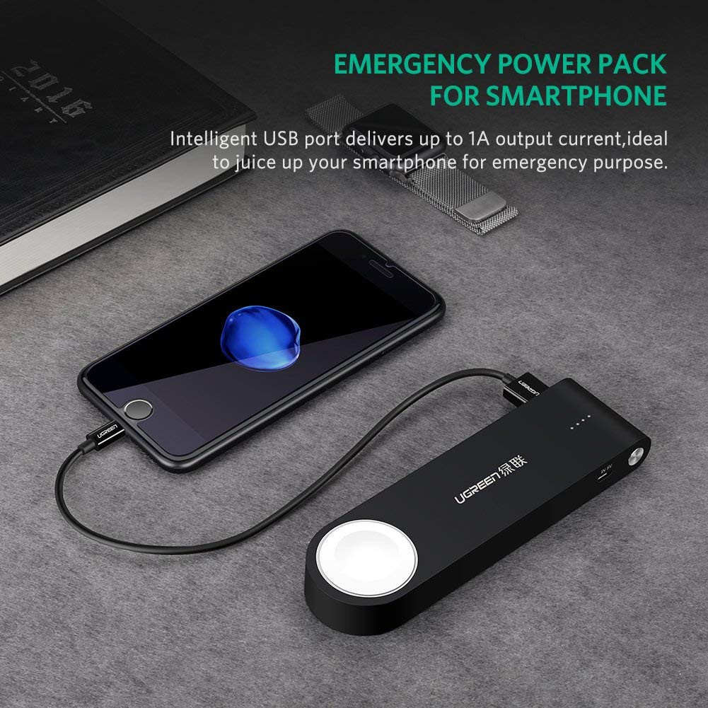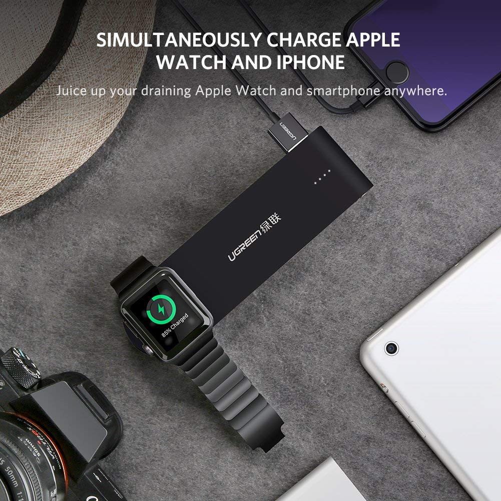 - Sạc cho các dòng Apple Watch Series 6/5/4/3/2/1/ Nike+/ Herms/ Edition + Sạc dự phòng cho iPhone chính hãng Ugreen 2200mAh (Đen)