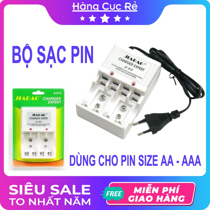 Bộ sạc cho pin AA (2A) - AAA (3A) FREESHIP Sạc nhanh pin tiểu, pin đũa, pin con ó, con thỏ - Shop Hàng Cực Rẻ