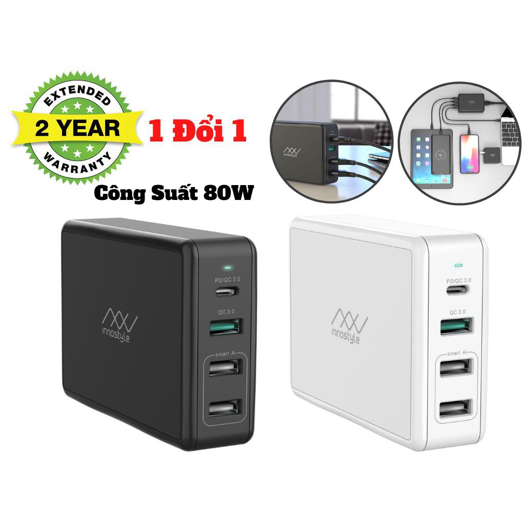 Sạc Đa Cổng Macbook Innostyle GoMAX Pro 80W (USB-C PD 61W + USB-A Smart AI