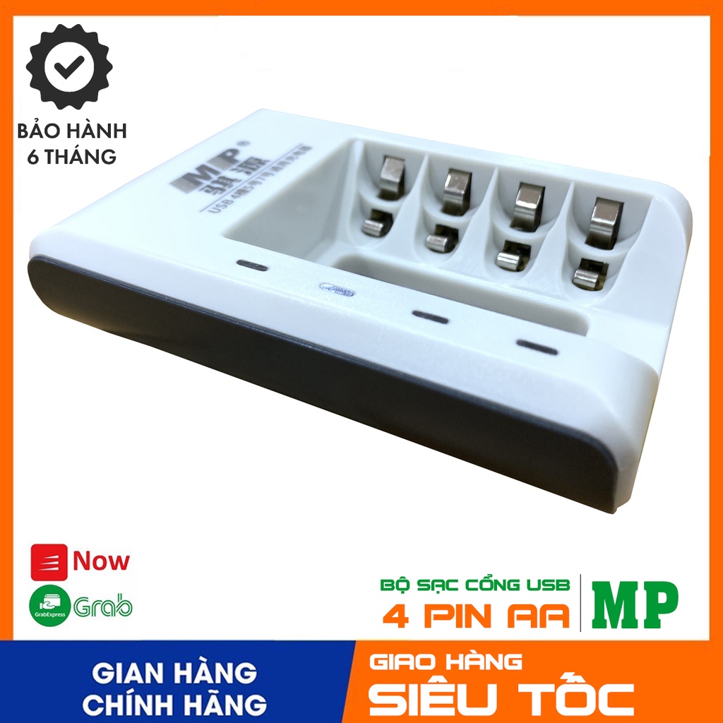 Bộ sạc đa năng 4 pin AA/AAA chính hãng MP nội địa, tự ngắt khi sạc đầy