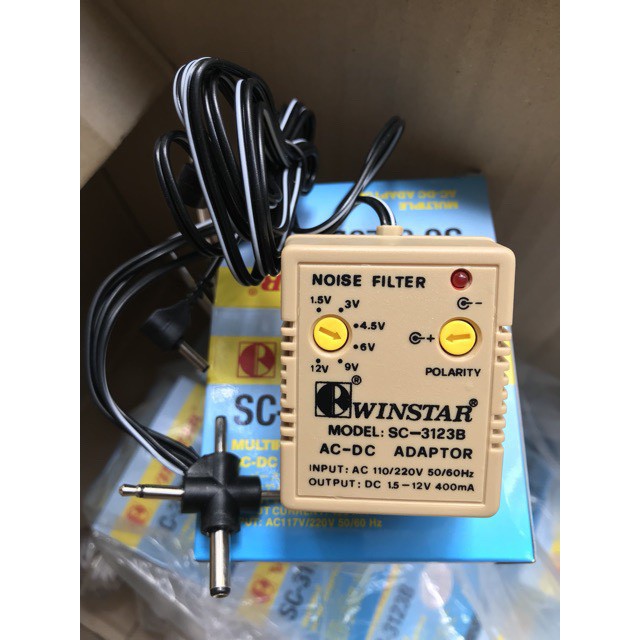 Bộ chuyển đổi điện winstar SC-3123 là bộ chuyển đổi nguồn AC sang DC với nhiều đầu ra: 1,5V; 3V; 4,5V; 6V; 9V và 12V, giúp cho việc sử dụng các thiết bị điện dễ dàng hơn, linh hoạt hơn.