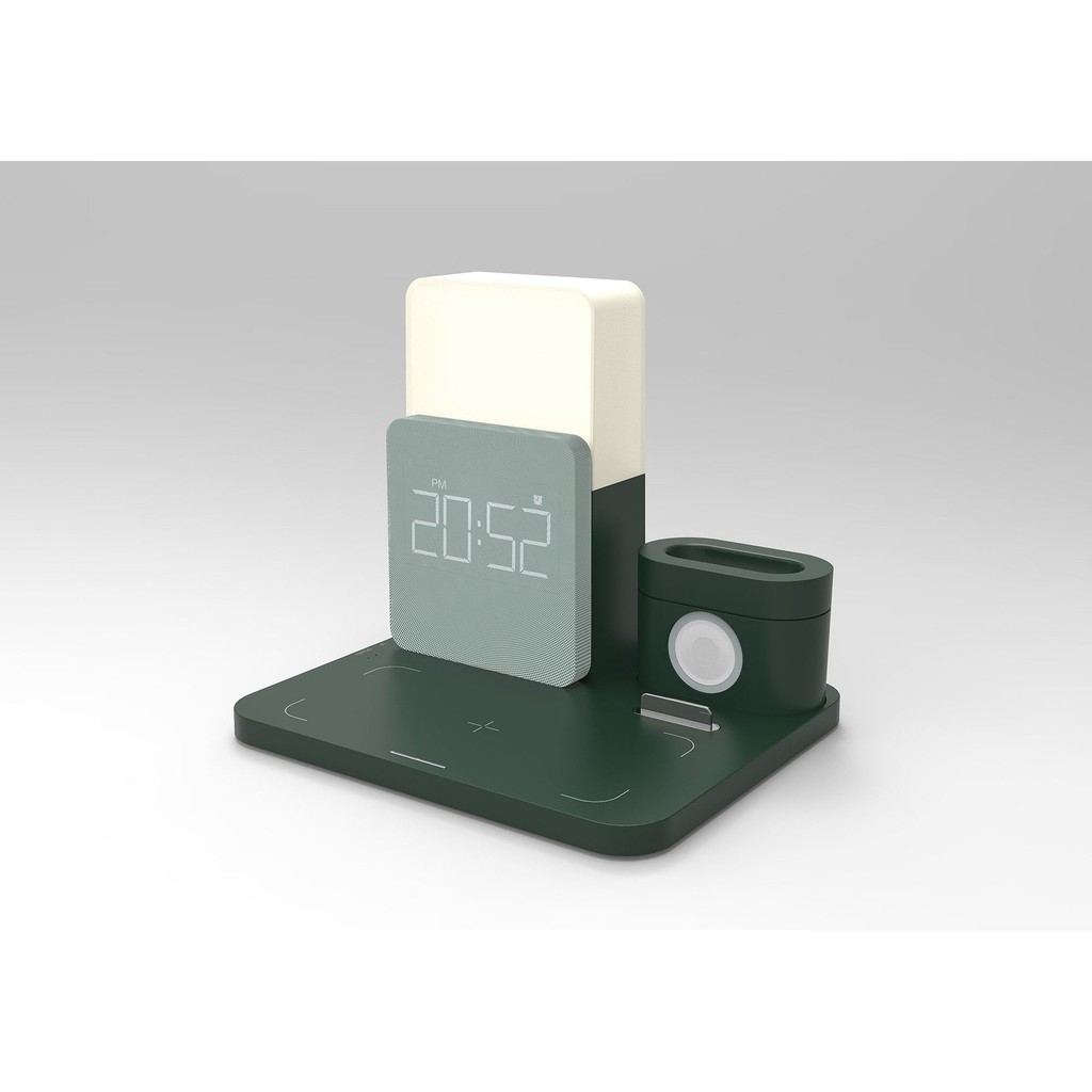 Sản phẩm tích hợp nhiều chức năng: vừa là sạc, vừa là đèn ngủ, đồng hồ báo thức và giá đỡ điện thoại.(Hỗ trợ: Sạc iphone không dây, sạc airpod, apple watch)