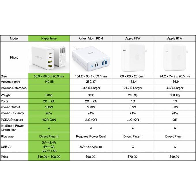 Sạc đa cổng HYPERJUICE GAN 100W USB-C Charger:Kích thước chỉ bằng một chiếc thẻ tín dụng HYPERJUICE GAN 100W USB-C Charger là bộ sạc Gallium Nitride 100W đầu tiên trên thế giới và cũng là bộ sạc 100W nhỏ nhất thế giới nhỏ hơn 50% so với bộ sạc truyền thống hiện tại.