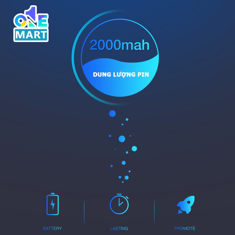 Dung lượng pin: 2000 mAh, có kèm cục sạc có thể sạc nguồn điện từ 100-240V, thời gian sạc 3-4 tiếng, thời gian sử dụng lên đến 2h.