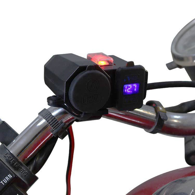 Sạc điện thoại gắn xe máy đa năng 3 in 1- Sản phẩm gồm các tiện ích :