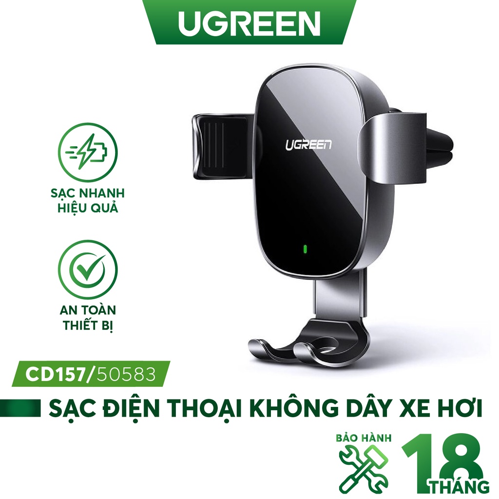 Sạc điện thoại không dây, cắm khe gió điều hòa trên xe hơi U GREEN CD157 50583 dùng cho màn hình từ 4.7-6.2 inchThương hiệu: UGREEN