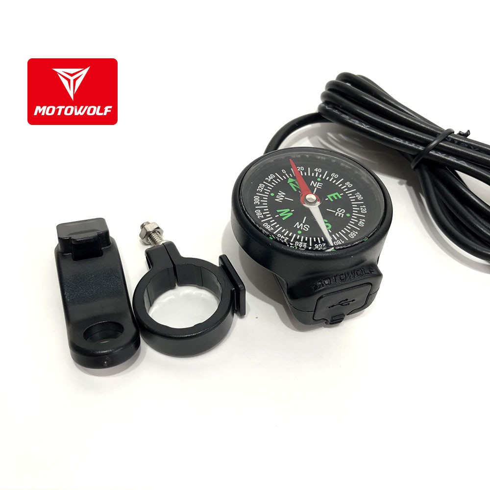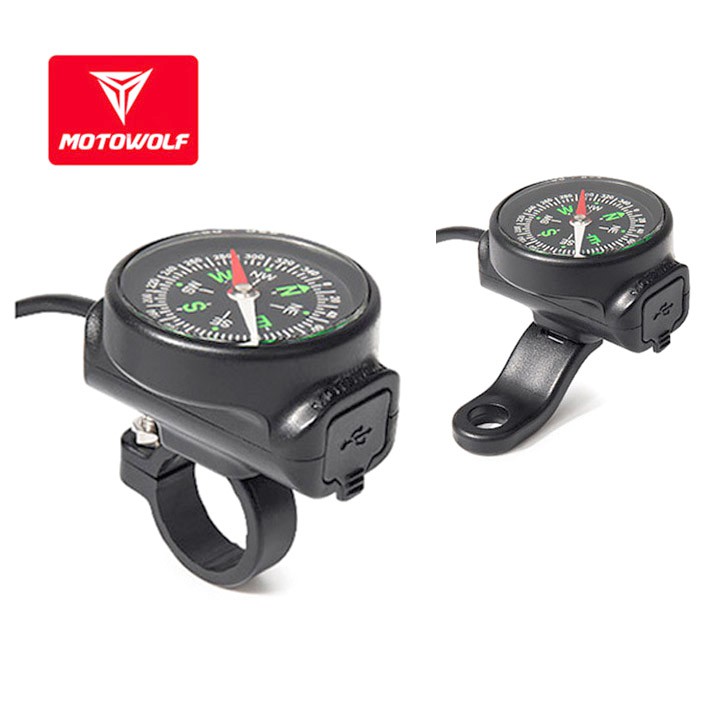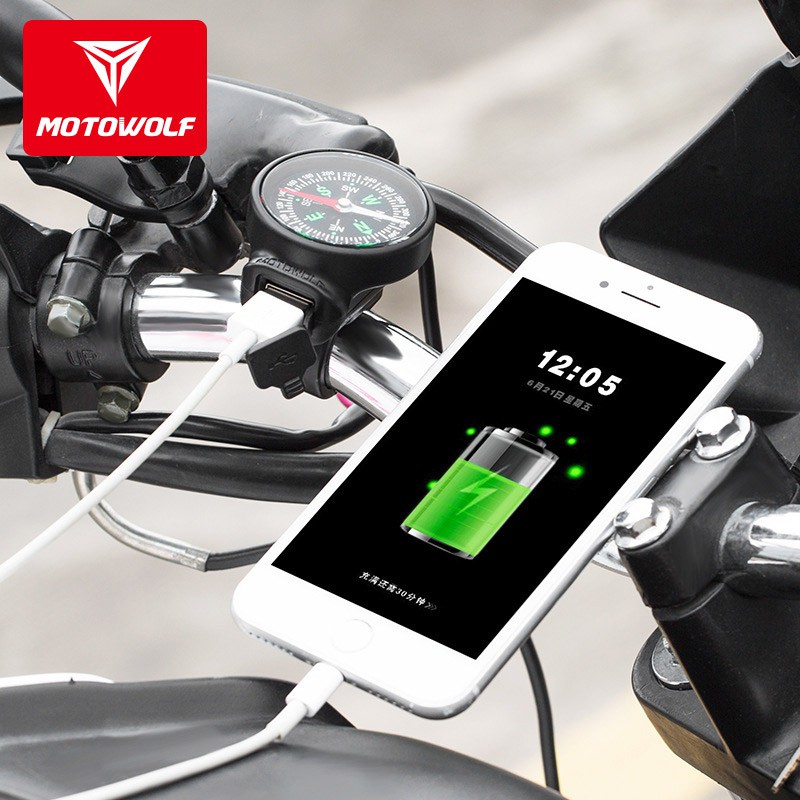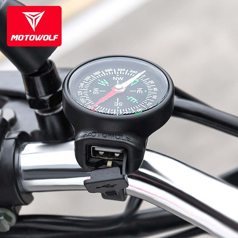Sạc Điện Thoại Kiêm La Bàn MOTOWOLF Gắn Xe Máy