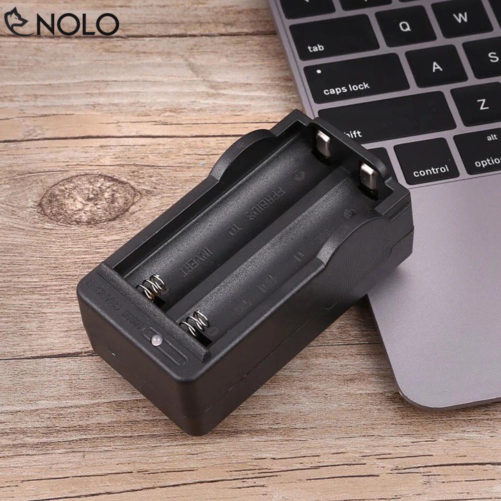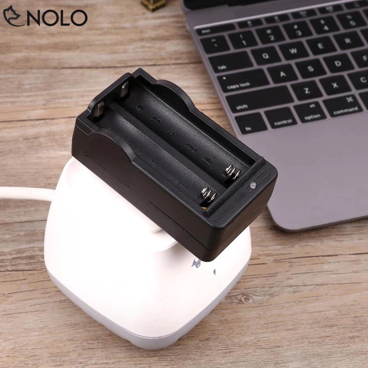 Sạc Đôi 2 Khe Cho Pin 18650 Kèm 4 Viên Pin Sạc 18650 Cho Đèn Pin Và Quạt Mini