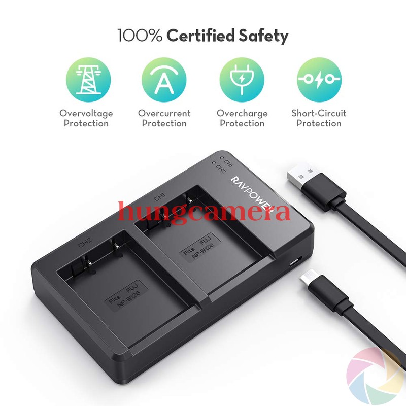 Sạc đôi RAVPower Fujifilm NP-W126S RAVPower RP-BC023 cho X-Pro2/X-T30/X-E3...Sản phẩm thương hiệu RAVPower (Mỹ)