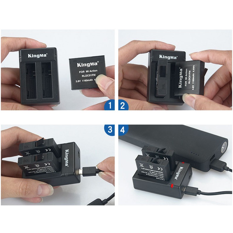 Cameras & Flycam > Phụ kiện máy ảnh > Bộ sạc pin || Sạc đôi kingma cho Xiaomi Mijia ActionCam 4KCòn hàng