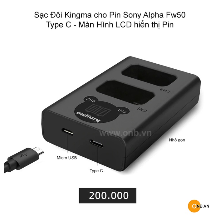 Cameras & Flycam > Phụ kiện máy ảnh > Bộ sạc pin || Sạc đôi Kingma FW50 cổngType C có màn hình LCDCòn hàng