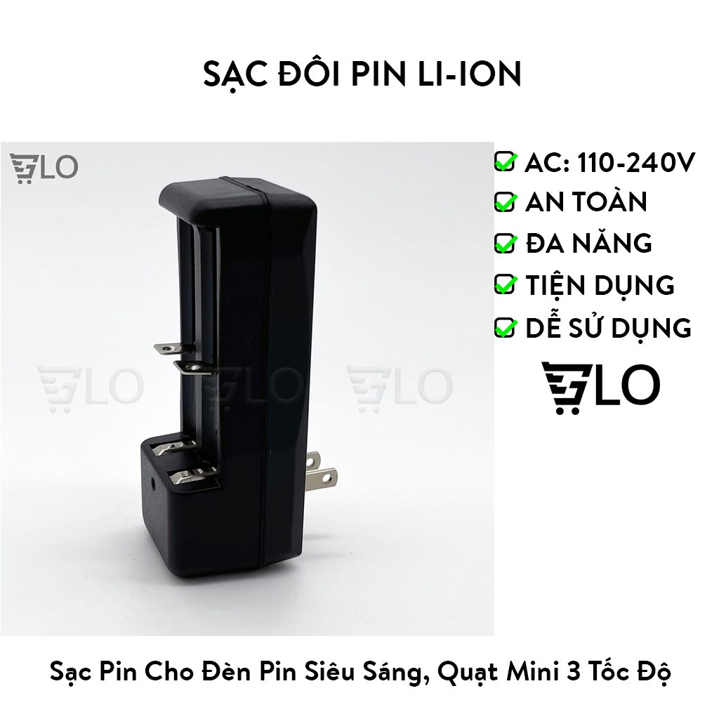 Giới thiệu Bộ Đế Sạc Đôi Pin Lion 18650/16340/14500 Dùng Cho Đèn Pin, Quạt Sạc,...