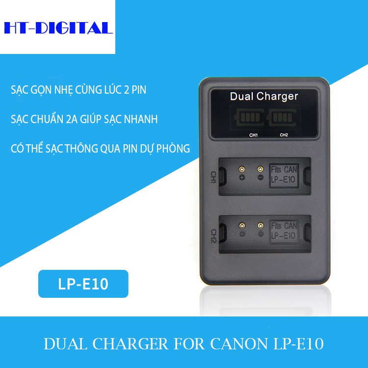 Sạc đôi pin LP-E10 cho Canon Rebel T3 T5 T6 Kiss X50 Kiss X70 EOS 1100D EOS 1200D EOS 1300D