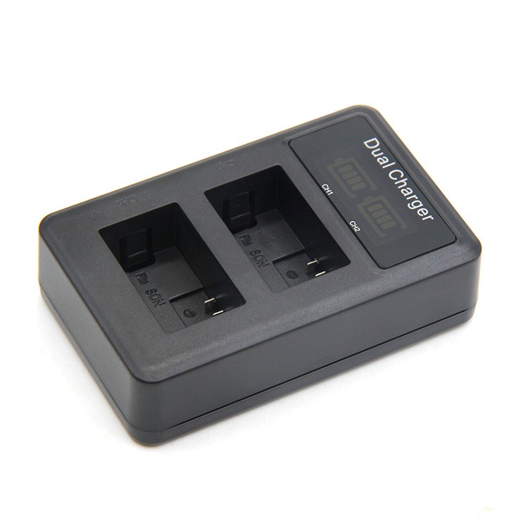 Sạc pin đôi giúp thời gian sạc nhanh chóng mỗi lần 2 viên. Sạc có màn hình hiển thị LCD giúp kiểm soát được lượng pin chính xác. Sản phẩm được làm từ chất liệu nhựa ABS bền và nhẹ dễ dàng di chuyển