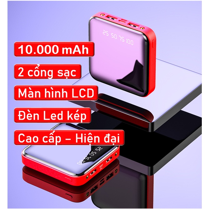 Sạc dự phòng 10.000mAh 2 cổng sạc USB màn hình LCD đèn Led kép chất lượng cao.