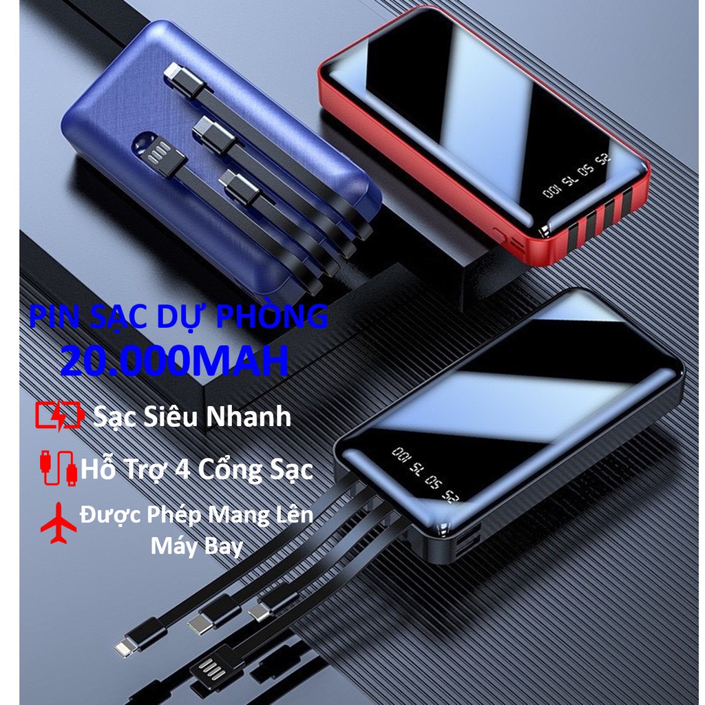 Sạc Dự Phòng 10000mAh Mặt Kính Tích Hợp 4 Cổng Sạc USB/Type C/Lightning/Micro USBLõi pin Lithium Polymer 10.000mAh mật độ cao